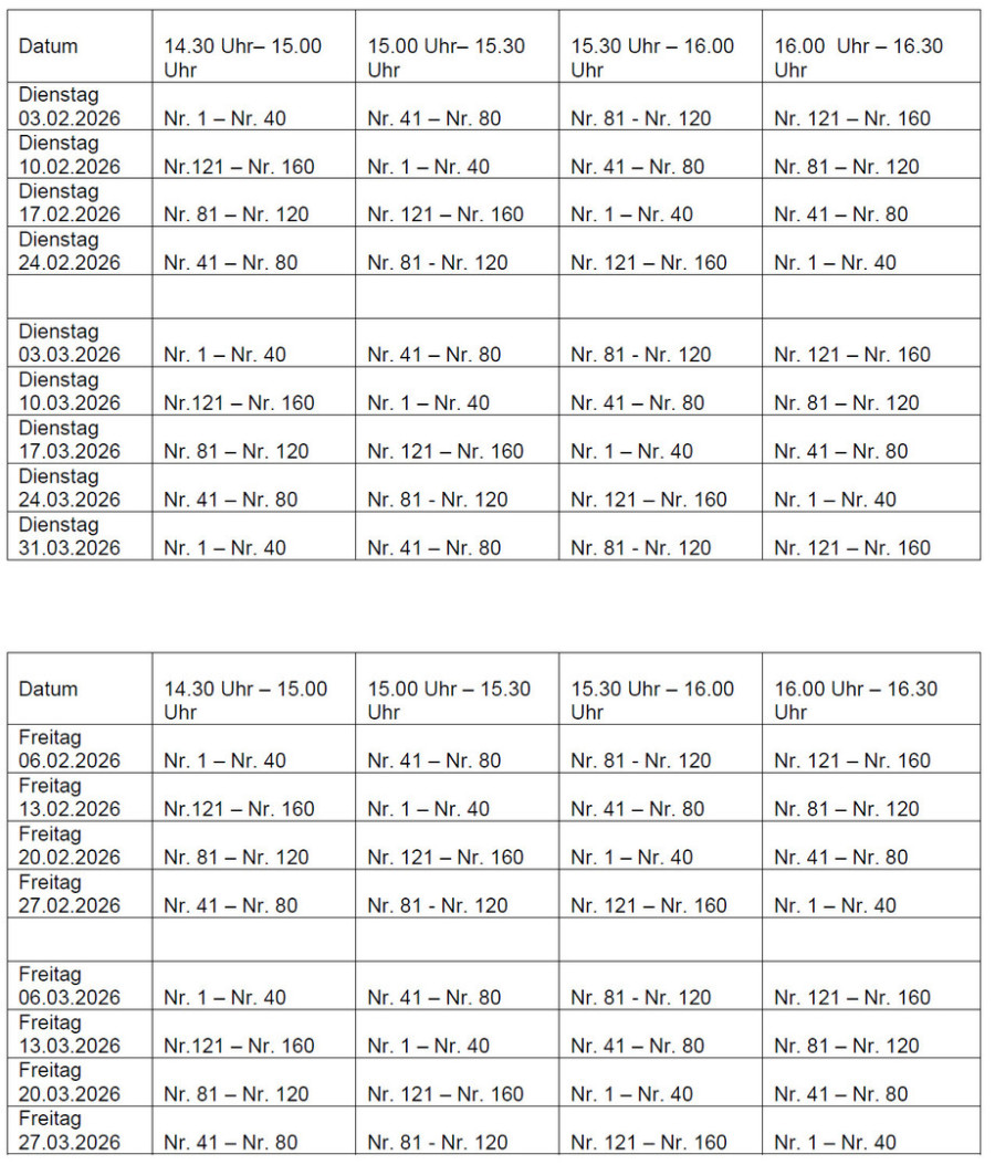 Montag, 02.02.2025 und 02.03.2026, 13.30 Uhr – 14.30 Uhr